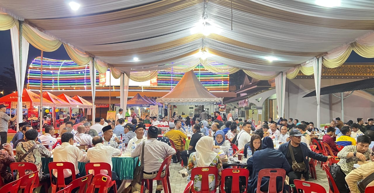 DELISERDANG (Waspada): Bupati Deliserdang, H.Asri Ludin Tambunan menghadiri buka puasa bersama dengan pengurus KONI Deliserdang di Ramadhan Fair, Kuliner Plaza, Lubukpakam, Kamis (13/3/25) malam.