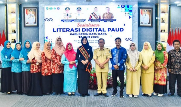 BATUBARA (Waspada): Bunda Pendidikan Anak Usia Dini (PAUD) Kabupaten Batubara Ny. Hj. Maya Indriasari Zahir, SE membuka sosialisasi literasi digital PAUD di Aula Rumah Dinas Bupati Batubara, Komplek Perumahan Inalum, Tanjung Gading, Kecamatan Seisuka, Senin (18/9).