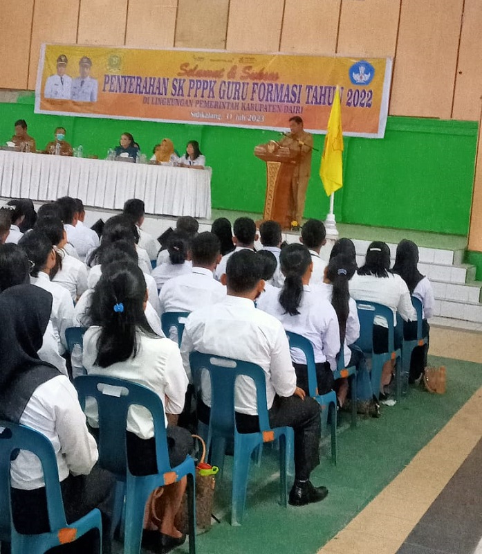 Sebanyak 514 guru formasi Tahun 2022 yang menerima SK P3K di lingkungan Pemerintah Kabupaten Dairi tersebut terdiri dari tenaga guru eks honorer kategori 2 dan guru non ASN yang terdaftar Data Pokok Pendidikan (Dapodik).