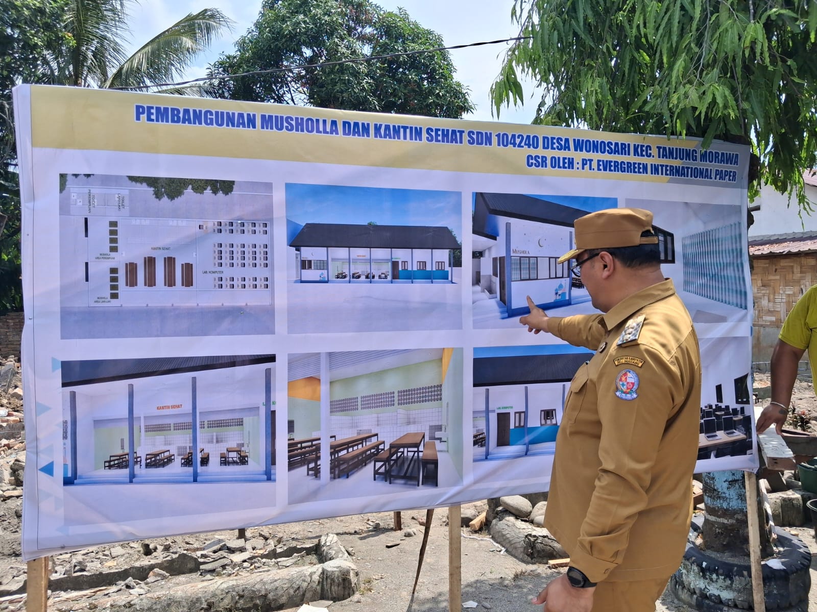 TANJUNGMORAWA (Waspada.id): PT Evergreen International Paper, PT. Dilon, dan CV. Marbudi jaya menyalurkan bantuan CSR untuk pembangun fasilitas mushala dan kantin sehat di SD Negeri 104240 Desa Wonosari, Kecamatan Tanjungmorawa, Senin (30/3/26).