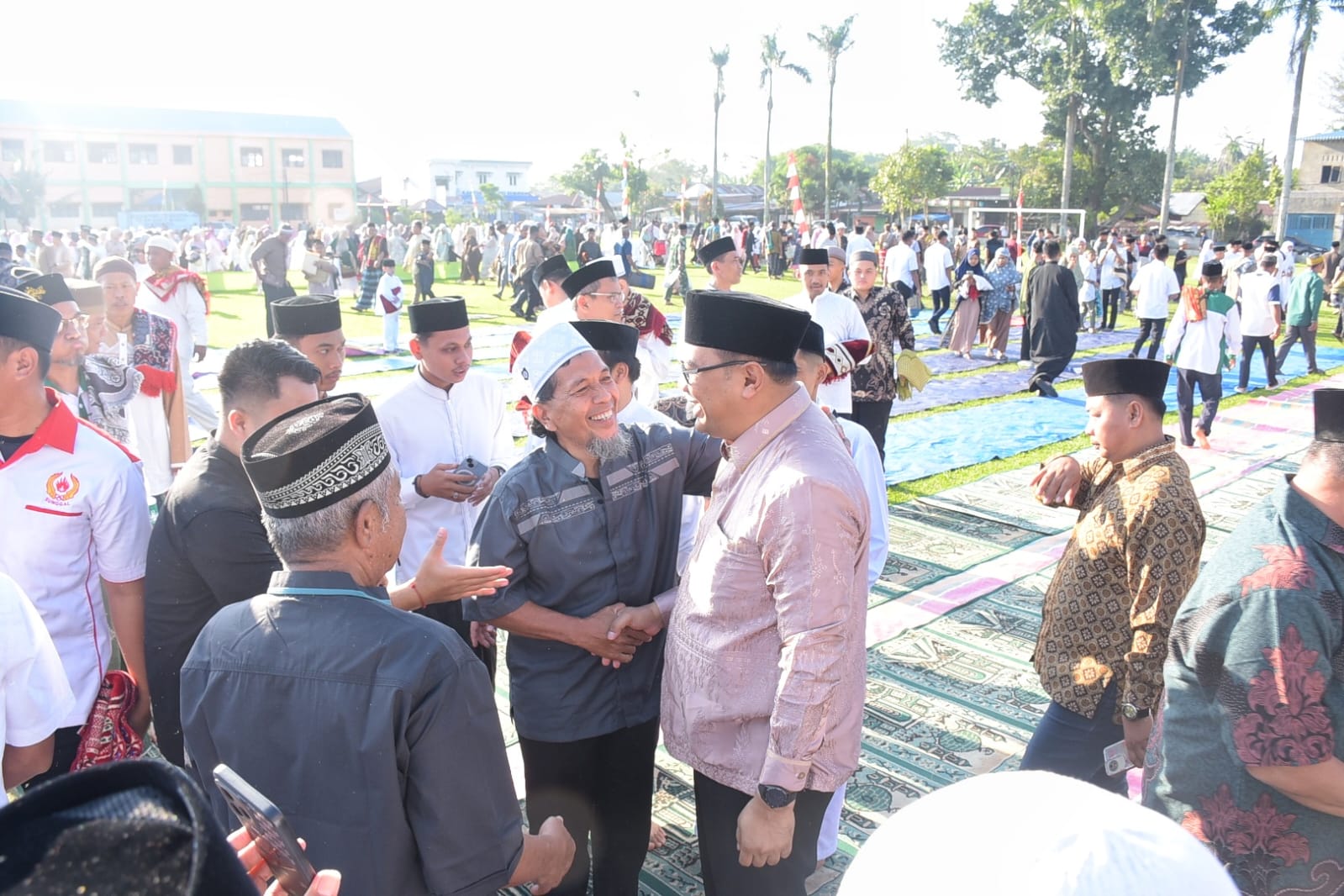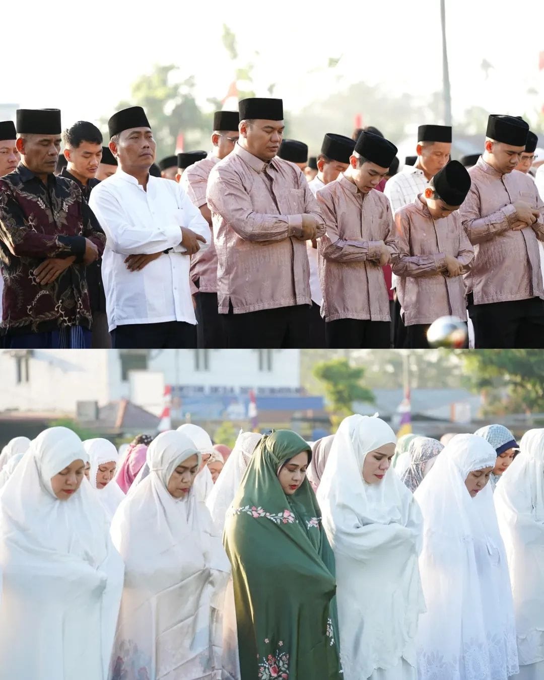 SUNGGAL (Waspada.id): Bupati Deliserdang, dr H Asri Ludin Tambunan dan Wakil Bupati, Lom Lom Suwondo SS, Salat Idul Fitri 1 Syawal 1447 Hijriah di Lapangan Bola Kaki Sei Semayang, Jalan Perintis Kemerdekaan, Kecamatan Sunggal, Sabtu (21/3/26).
