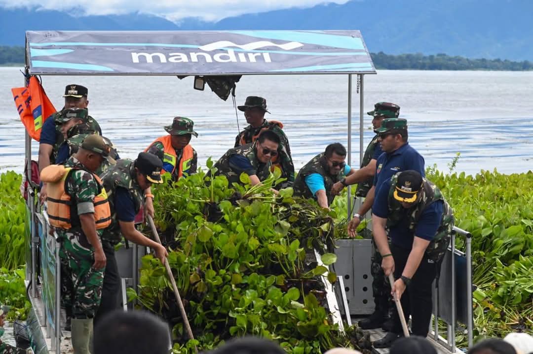Pembersihan eceng gondok itu dilakukan dalam rangkaian acara TNI Manunggal memelihara Danau Toba, yang merupakan komitmen menjaga ekosistem air dan menjaga lingkungan di sekitaran Danau Toba.