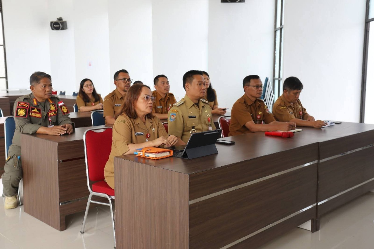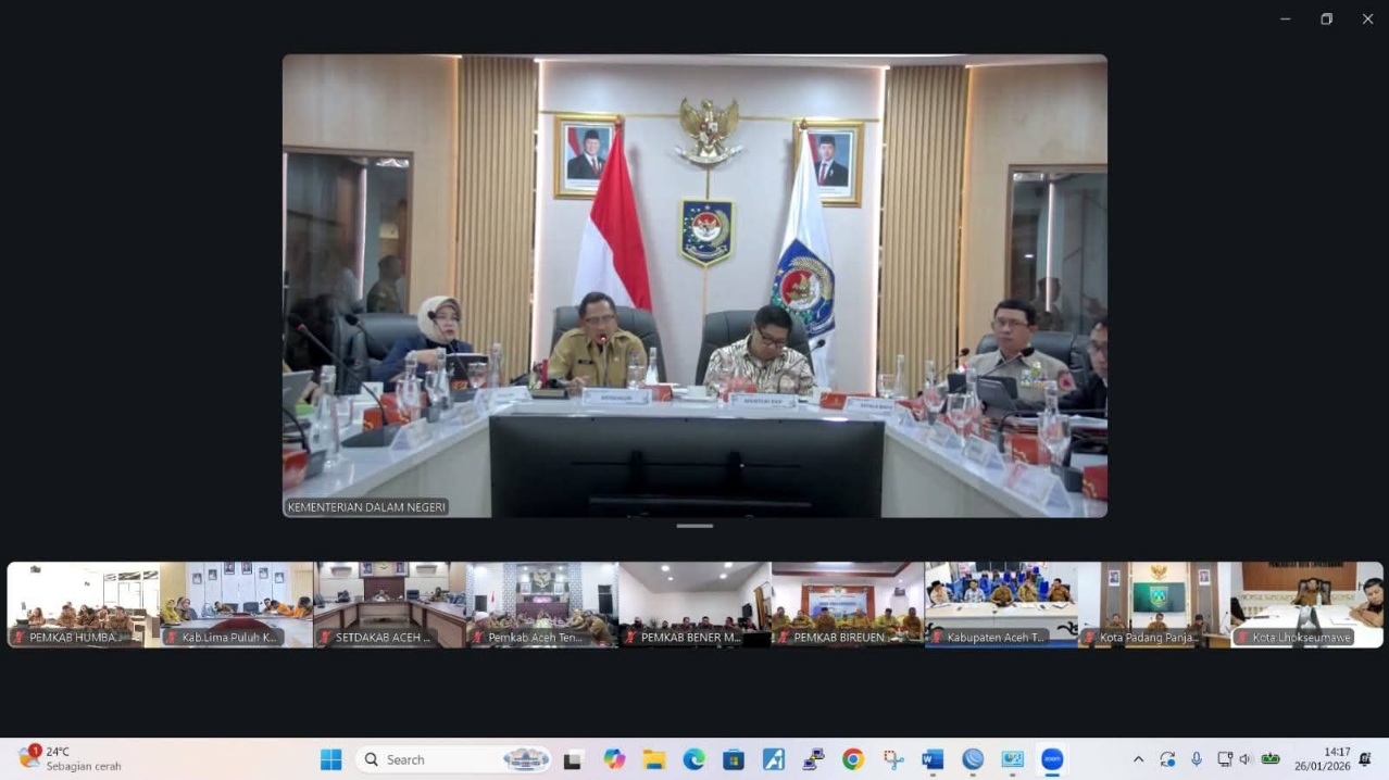 DOLOKSANGGUL (Waspada.id): Bupati Humbang Hasundutan Dr. Oloan P. Nababan, SH, MH, mengikuti rapat pembahasan penyaluran bantuan perumahan dan bantuan sosial pascabencana secara daring melalui Zoom pada Senin (26/01/2026), bertempat di Ruang Rapat Setdakab Kantor Bupati di Bukit Inspirasi Doloksanggul.