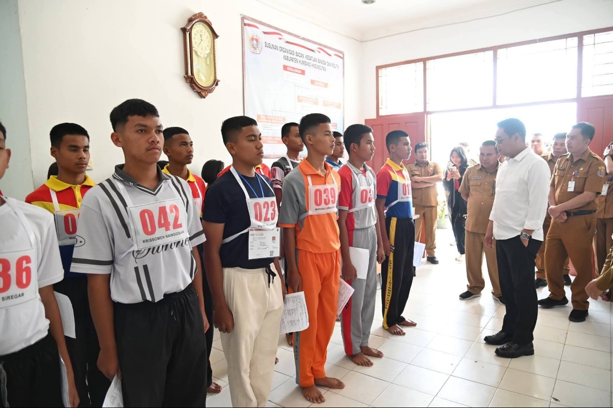 HUMBAHAS (Waspada.id): Bupati Humbang Hasundutan, Dr. Oloan P. Nababan, SH, MH, meninjau langsung pelaksanaan seleksi kesehatan dan parade Calon Pasukan Pengibar Bendera Pusaka (Paskibraka) tahun 2026 di kompleks perkantoran Purba, Kantor Kesbangpol, Senin (13/04/2026).