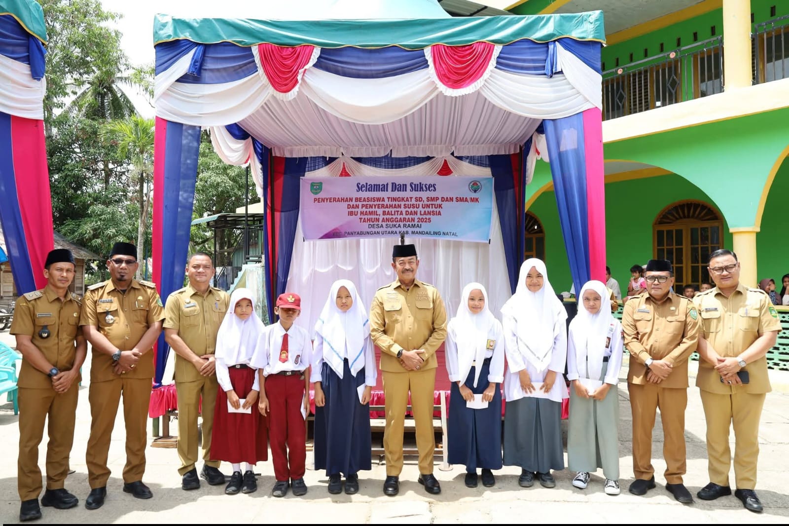 PANYABUNGAN UTARA (Waspada.id): Bupati Mandailing Natal (Madina) H. Saipullah Nasution, mengapresiasi kebijakan Kepala Desa Suka Ramai, Kecamatan Panyabungan Utara, Ahmad Munawir Rangkuti yang memberikan beasiswa bagi siswa berprestasi tingkat SD, SMP, dan SMA di desa tersebut.
