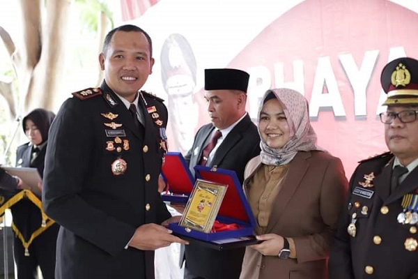 Bupati menyampaikan selamat HUT ke-77 Byayangkara, dia juga berharap dengan bertambahnya usia, Polri ke depan dapat lebih produktif menjaga keamanan, khususnya di bumi Mandailing Natal. (irh)
