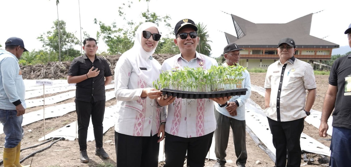 PADANGLAWAS (Waspada.id): Bupati Padanglawas, Putra Mahkota Alam Hasibuan SE, bersama Ketua PKK Kabupaten Padang Lawas, Ny. Mahzalena Putra Mahkota Alam Hasibuan, melakukan penanaman cabai merah di lahan pertanian samping Kantor Bupati Padanglawas, Kamis (23/10/2025). Kegiatan ini merupakan upaya mendukung ketahanan pangan nasional dan memberdayakan kelompok tani.