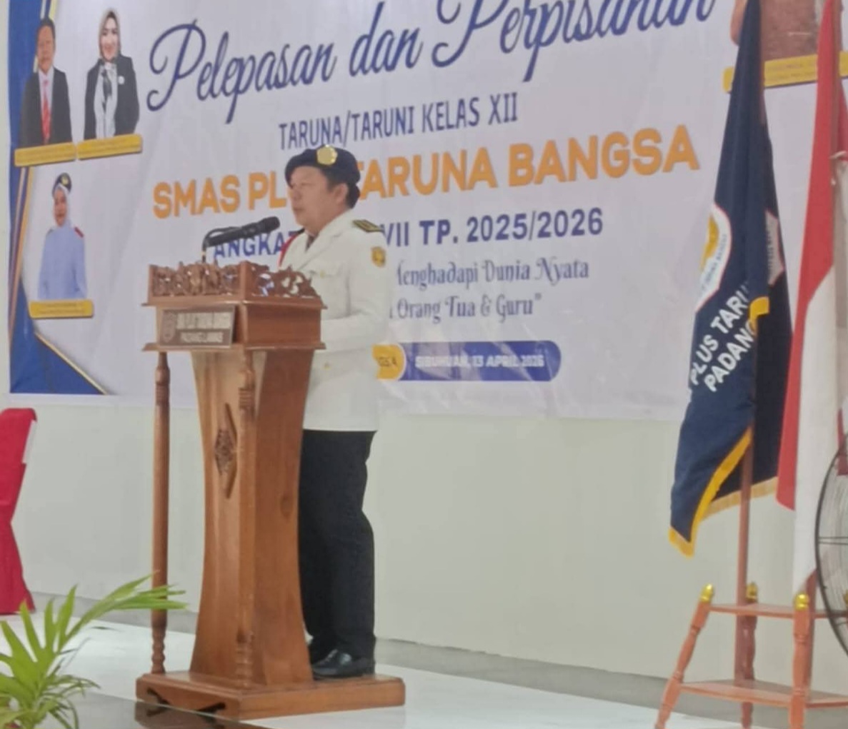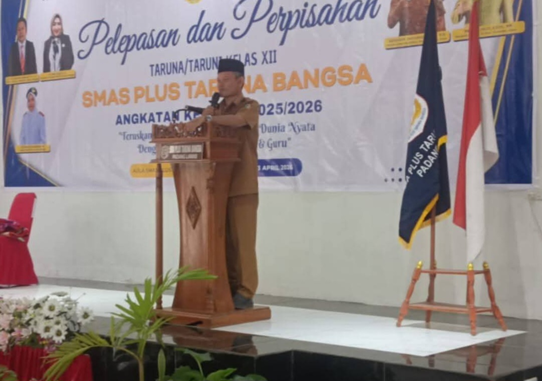 PALAS (Waspada.id): Bupati Padanglawas, Putra Mahkota Alam Hasibuan, SE, yang diwakili Asisten III Drs. Amir Sholeh Nasution, menghadiri acara pelepasan dan perpisahan siswa-siswi Kelas XII SMA Plus Taruna Bangsa Angkatan VII Tahun Ajaran 2025/2026, Senin (13/4/2026).