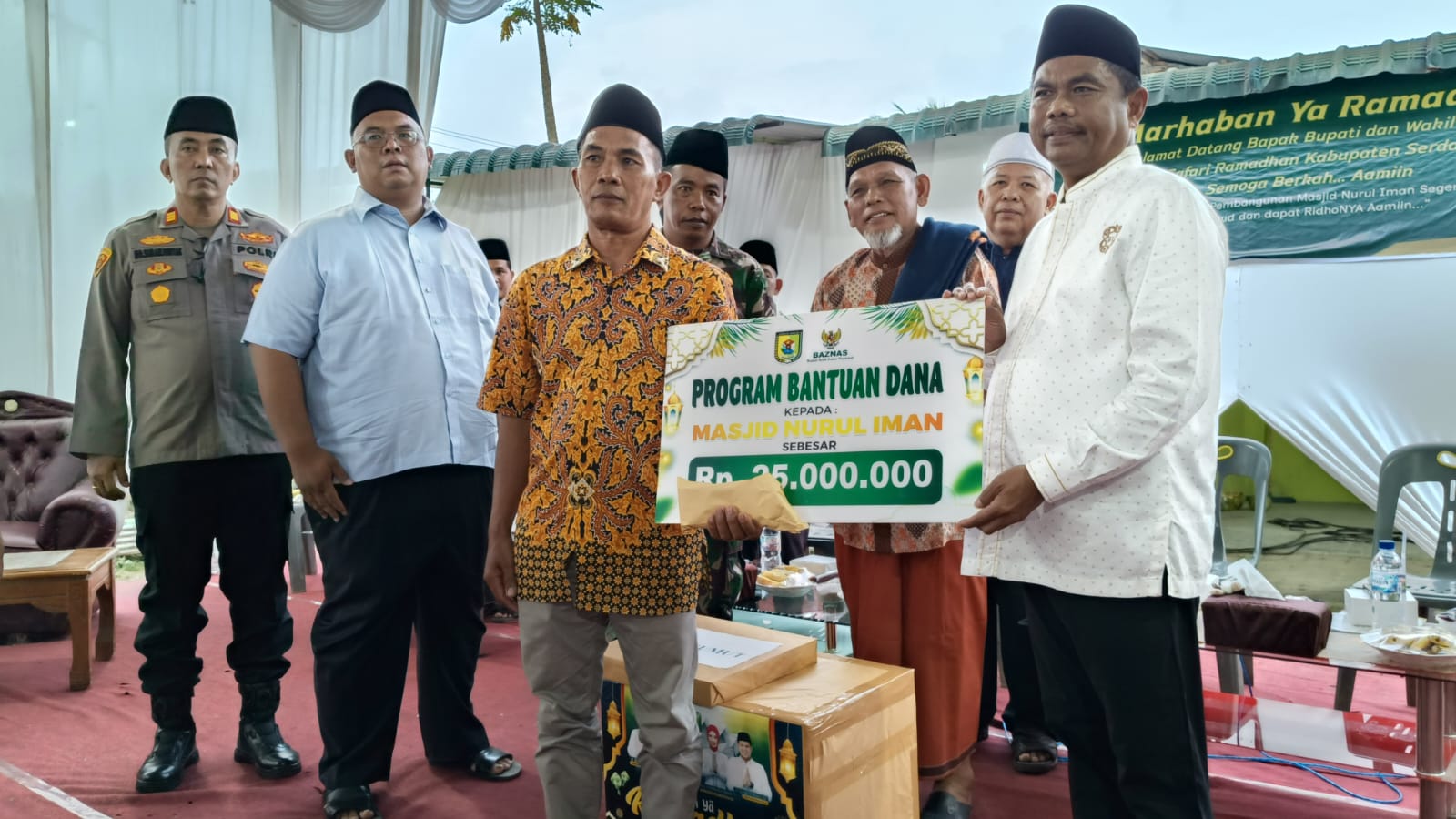 Dalam kunjungan itu, Bupati menyalurkan bantuan untuk pembangunan masjid sekaligus meminta kepolisian menekan peredaran narkoba di wilayah tersebut. “Alhamdulillah, kita bersyukur kepada Allah SWT karena diberi kesehatan sehingga bisa hadir bersama masyarakat dalam Safari Ramadhan di Masjid Nurul Iman ini,” ujar Darma Wijaya.