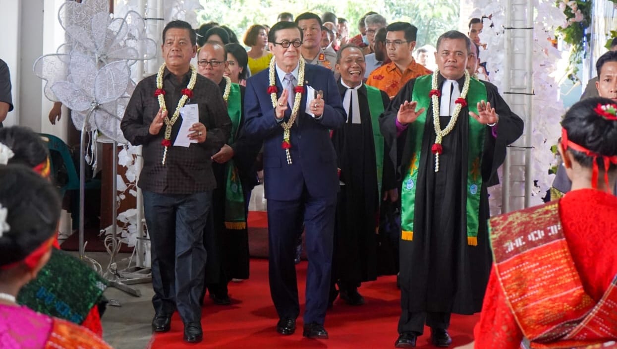 “Dengan Rahmat Tuhan, Sinode Am Kerja (SAK) XXIII GKPI Tahun 2023 diresmikan,” ujar Yasonna sembari memukul gong.