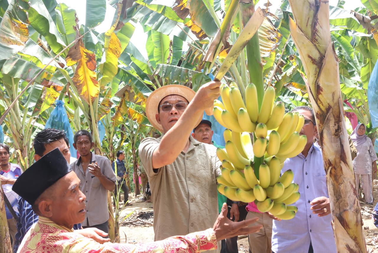 TAPSEL (Waspada.id): Bupati Tapanuli Selatan, H. Gus Irawan Pasaribu, melakukan panen perdana buah pisang hasil inovasi kemandirian pangan petani lokal anggota Kelompok Tani (Poktan) Gerhanas, Desa Sipange Godang, Kecamatan Sayurmatinggi, Minggu (2/11/2025)