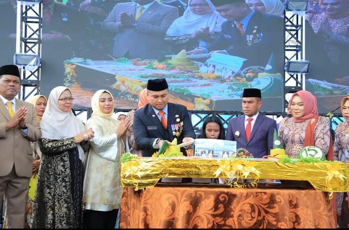 Terlihat hadir di acara Sekda Muhammad Suib, MM, ketua DPRD H. Indra Surya Bakti Simatupang, MKn, Bupati Periode 2010-2020 H. Kharuddin Syah, SE, Ketua TP PKK Ny. dr. Rama Dhona Hendriyanto Sitorus,M.Ked(Ped),Sp.A, Ketua I Bidang Pembinaan Karakter Keluarga TP PKK Ny. dr. Zuhriani Samsul Tanjung, Ketua DWP Ny. Sri Wahyuni Muhammad Suib, jajaran Forkopimda, DPRD, tokoh pemekaran, tokoh agama, dan tokoh masyarakat. (Cim)