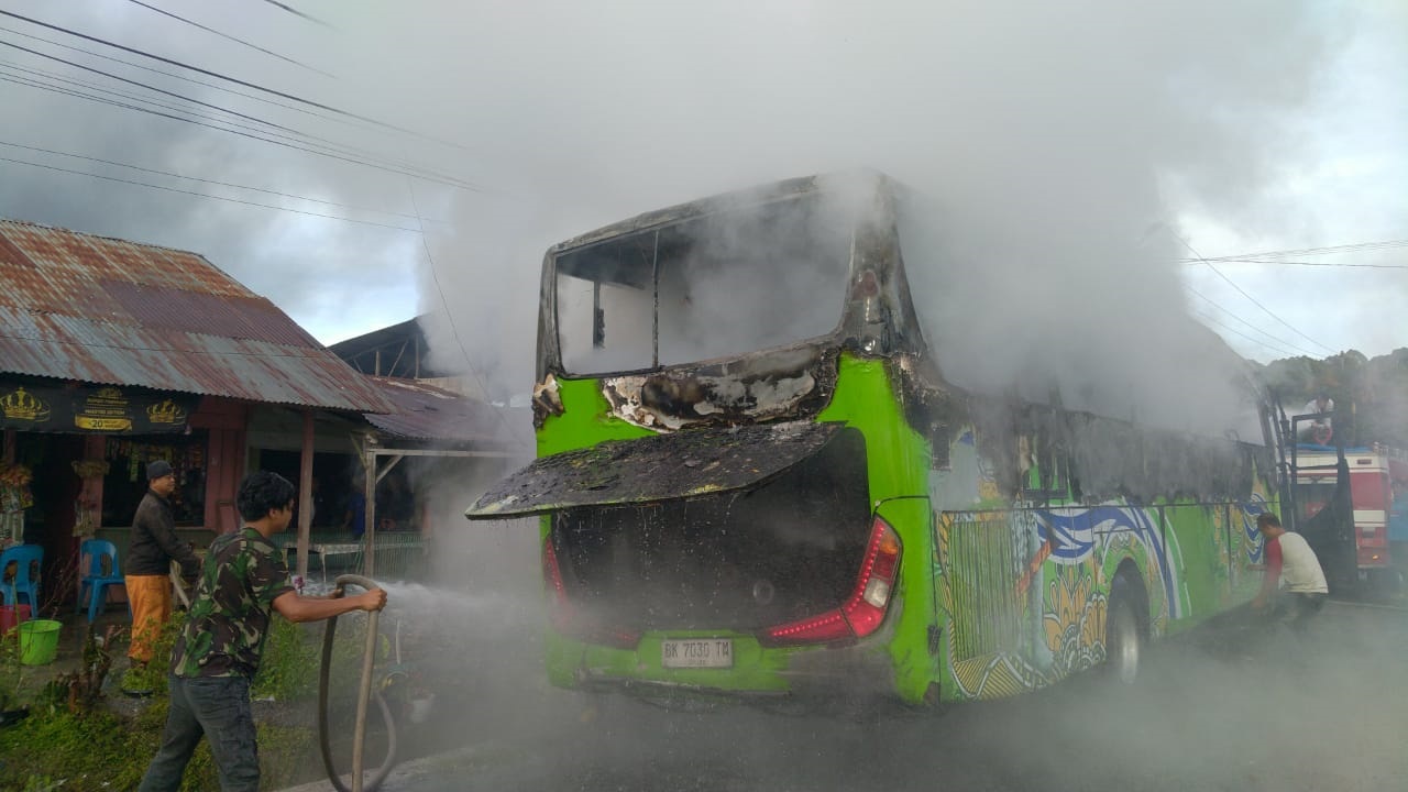 Kapolres Simalungun AKBP Choky Sentosa Meliala, dikonfirmasi Kamis (18/4) membenarkan informasi kebakaran 1 unit bus pariwisata di Tigarunggu.