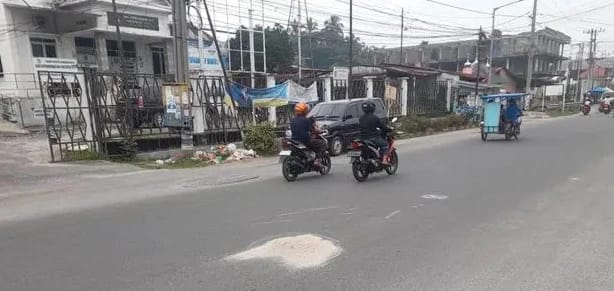 Lokasi terjadinya tubrukan dua unit sepeda motor di depan Kantor Disdukcapil Pemko Pematangsiantar, Jl. Melanthon Siregar, Jumat (24/1) sekitar pukul 09:55 yang mengakibatkan salah satu pengemudi sepeda motor meninggal dunia.(Waspada-Edoard Sinaga).