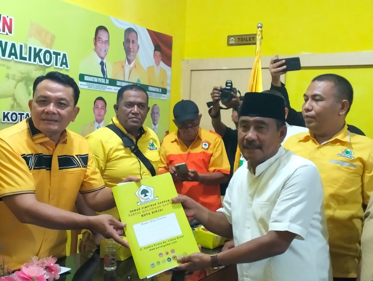 BINJAI (Waspada): Amir Hamzah, bakal calon Wali Kota Binjai petahana, mengembalikan formulir pendaftaran ke Partai Golkar, Senin (22/4) siang.