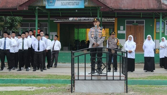P.SIDIMPUAN (Waspada) : Kapolres Padangsidimpuan AKBP Dr Wira Prayatna, SH, SIK, MH datangi Madrasah Aliyah Negeri (MAN) 1 Padangsidimpuan untuk memberikan arahan kepada siswa dan guru madrasah (sekolah) tersebut tentang dampak bullying, Senin (9/9).
