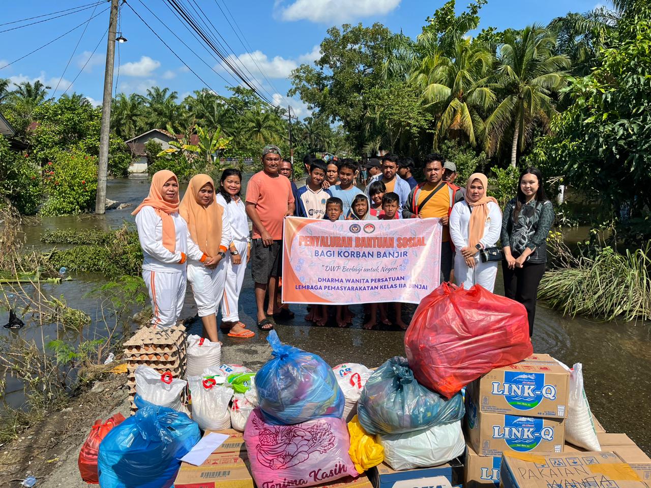 BINJAI (Waspada.id): Sebagai wujud rasa empati keluarga besar Dharma Wanita Persatuan Lapas Kelas IIA Binjai menyalurkan bantuan kepada masyarakat yang berdampak musibah banjir di Tanjung Pura Kab. Langkat baru-baru ini. Bantuan berupa beras, air mineral, telur, mie instan.