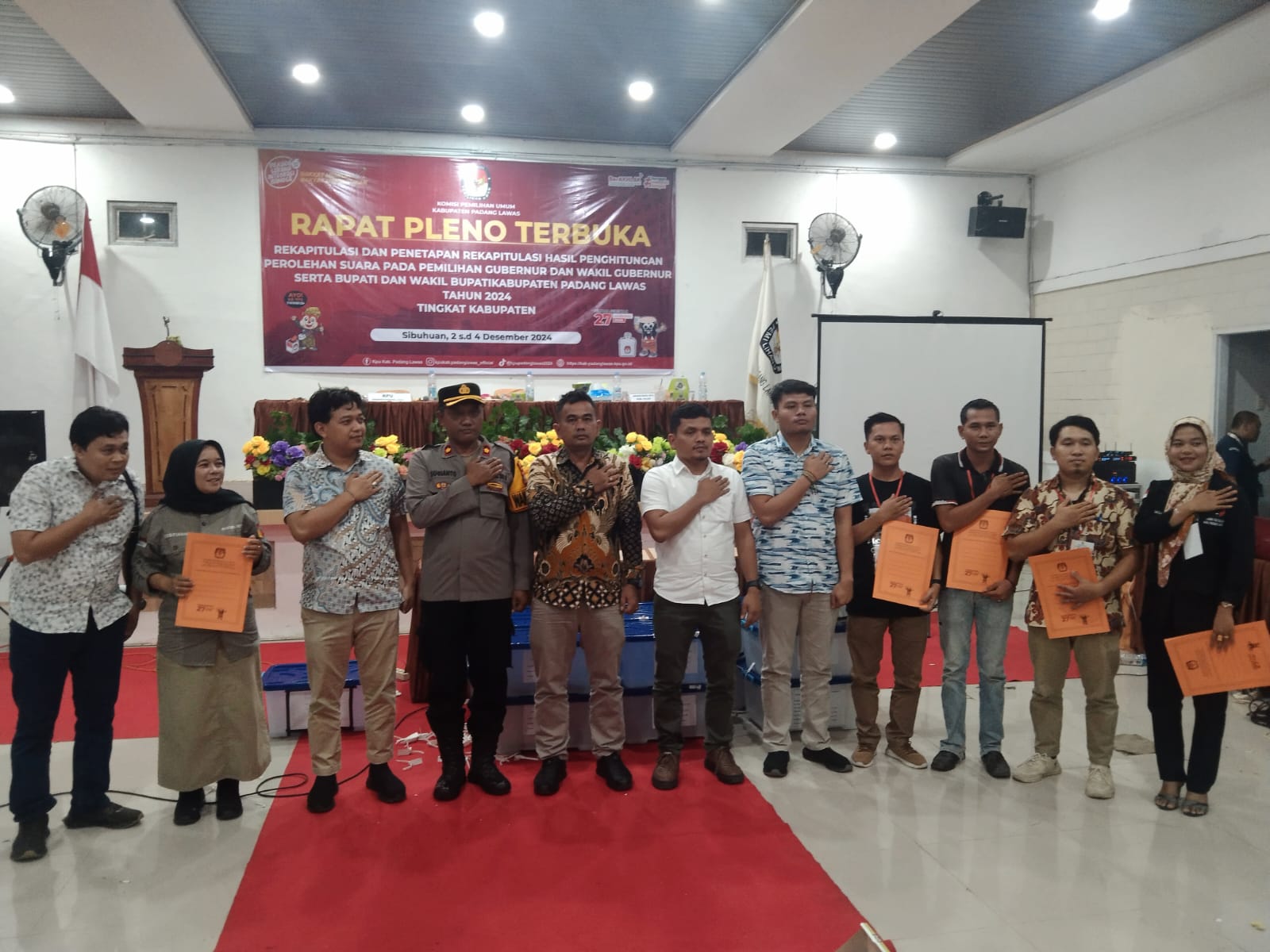 Keterangan foto: KPU Padang Lawas usai rapat pleno terbuka rekapitulasi perhitungan perolehan suara pemilihan Gubernur -Wakil Gubernur dan Bupati-Wakil Bupati Padang Lawas. (Waspada/Ist)