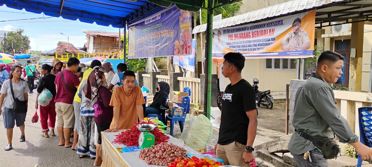 Sibolga (Waspada.id): Demi menjaga kestabilan harga bahan pokok, Dinas Perikanan dan Ketahanan Pangan Kota Sibolga Bekerja Sama dengan Bank Indonesia (BI) Kpw Sibolga, menggelar pasar murah di depan Kantor Lurah Pancuran Gerobak di Jalan Gabu Kelurahan Pancuran Gerobak Kecamatan Sibolga Kota, Kota Sibolga, Sabtu (11/10/2025).