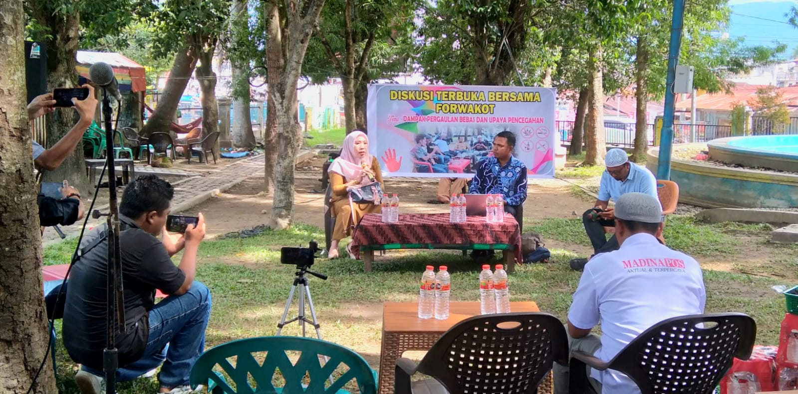 Forum Wartawan Kota (Forwakot) Panyabungan menggelar diskusi terbuka bertema Dampak Pergaulan Bebas dan Pencegahannya di Taman Kota Panyabungan, Selasa (11/7).