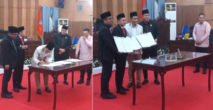 Pengumuman pengusulan pemberhentian Bupati/Wakil Bupati Batubara akhir masa jabatan 27 Desember 2023 ini ditandai dengan penandatanganan pengusulan pemberhentian oleh pimpinan dewan disaksikan Bupati/Wakil Bupati Ir. H. Zahir, M.AP/Oky Iqbal Frima, SE, serta anggota dewan dan undangan.
