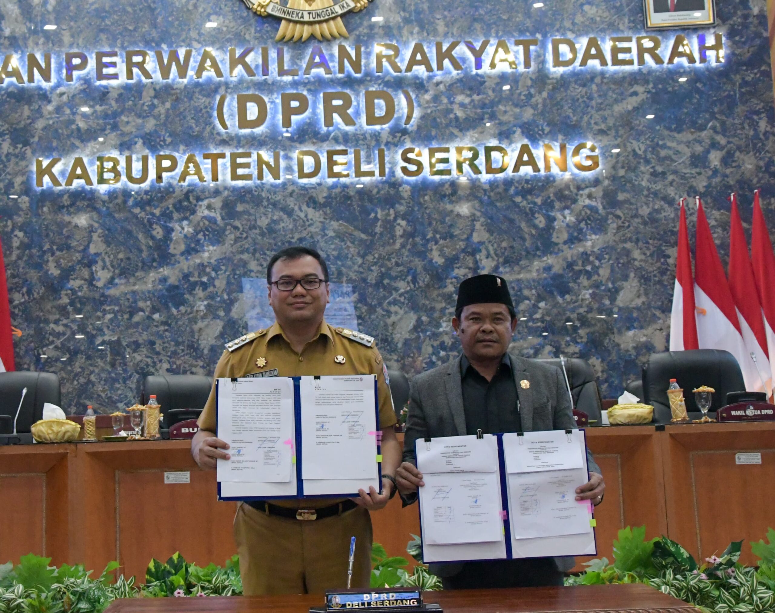 Hal itu ditandai dengan penandatanganan persetujuan bersama Rancangan KUA-PPAS APBD Deliserdang tahun 2026 antara Bupati Deliserdang, dr. H. Asri Ludin Tambunan dengan Wakil Ketua DPRD, Agustiawan Saragih, pada Rapat Paripurna DPRD Deliserdang, Senin (24/11/25).