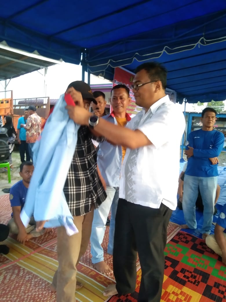 Di akhir acara, dr. Asri Ludin Tambunan memakaikan baju 02 kepada seluruh tenaga kerja bongkar muat di PT Indomarco Desa Tanjungmorawa B, dan sepakat mendukung ADIL di bawah naungan Syahruna.