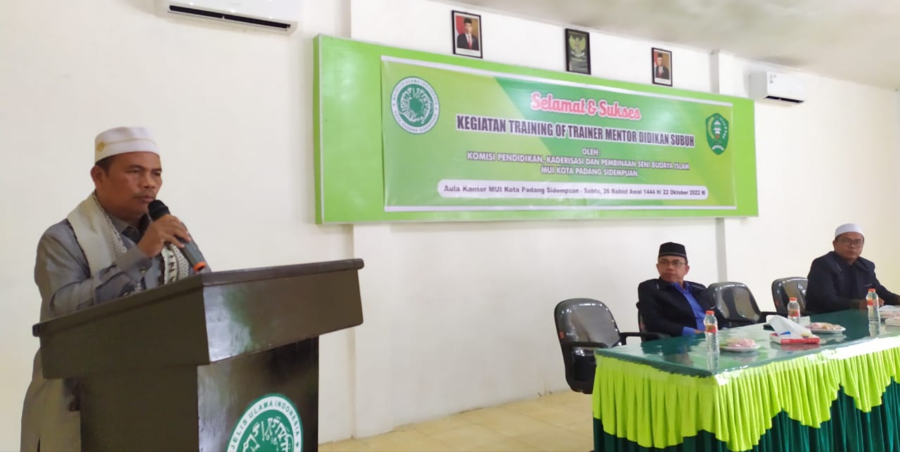 Dr.Hamdan Hasibuan ditetapkan sebagai Ketua Forum Didikan Subuh Padang Sidempuan usai memberikan pencerahan dan penguatan terhadap mentor didikan Subuh pada acara Training Of Training Mentor Didikan Subuh yang digelar Komisi Pendidikan, Kaderisasi dan Pembinaan Seni Budaya Islam, MUI Kota Padang Sidempuan, Sabtu (22/10).