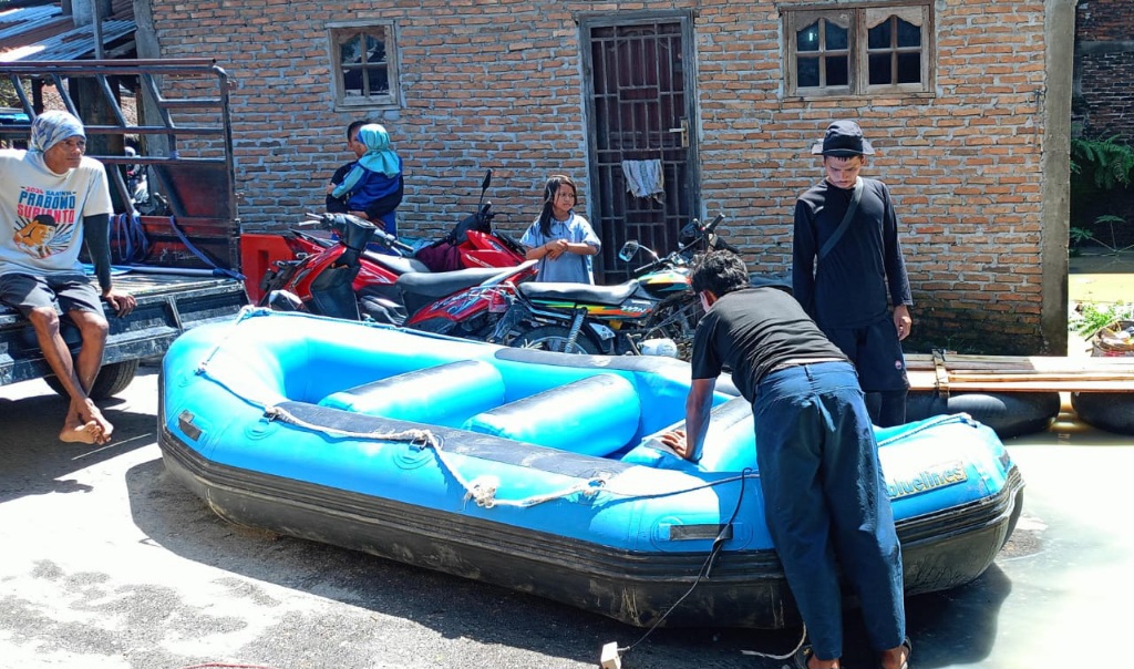 Sebagai bentuk dukungan, BUMDes Sadariah Bartong mengirimkan delapan perahu karet arung jeram untuk membantu evakuasi di sejumlah titik.