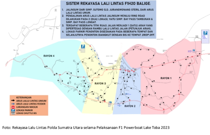 Rekayasa lalu lintas yang dilakukan adalah untuk mengantisipasi kemacetan dan kepadatan arus kendaraan dan orang. Maka itu, kata Kapolda, bersama dengan Dinas Perhubungan Provinsi Sumatera Utara dan pemerintah daerah terdampak, selama kegiatan 24 hingga 26 Februari 2023 melakukan rekayasa menuju khususnya Kota Balige dan venue utama hingga lokasi side event F1 Powerboat Lake Toba 2023.