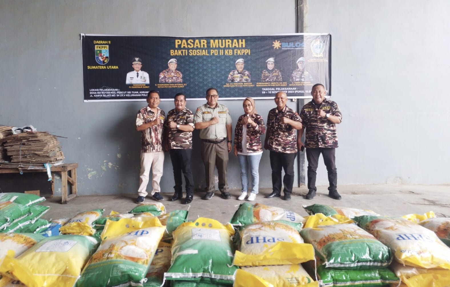 DELISERDANG (Waspada): Pengurus Daerah (PD) II Keluarga Besar (KB) FKPPI Sumatera Utara (Sumut) menyiapkan 5 ton beras dan 2.000 liter minyak goreng (migor) untuk didistribusikan kepada masyarakat melalui kegiatan pasar murah di Dusun III, Desa Seirotan, Kecamatan Percut Seituan, Kabupaten Deliserdang, Jumat (10/11).