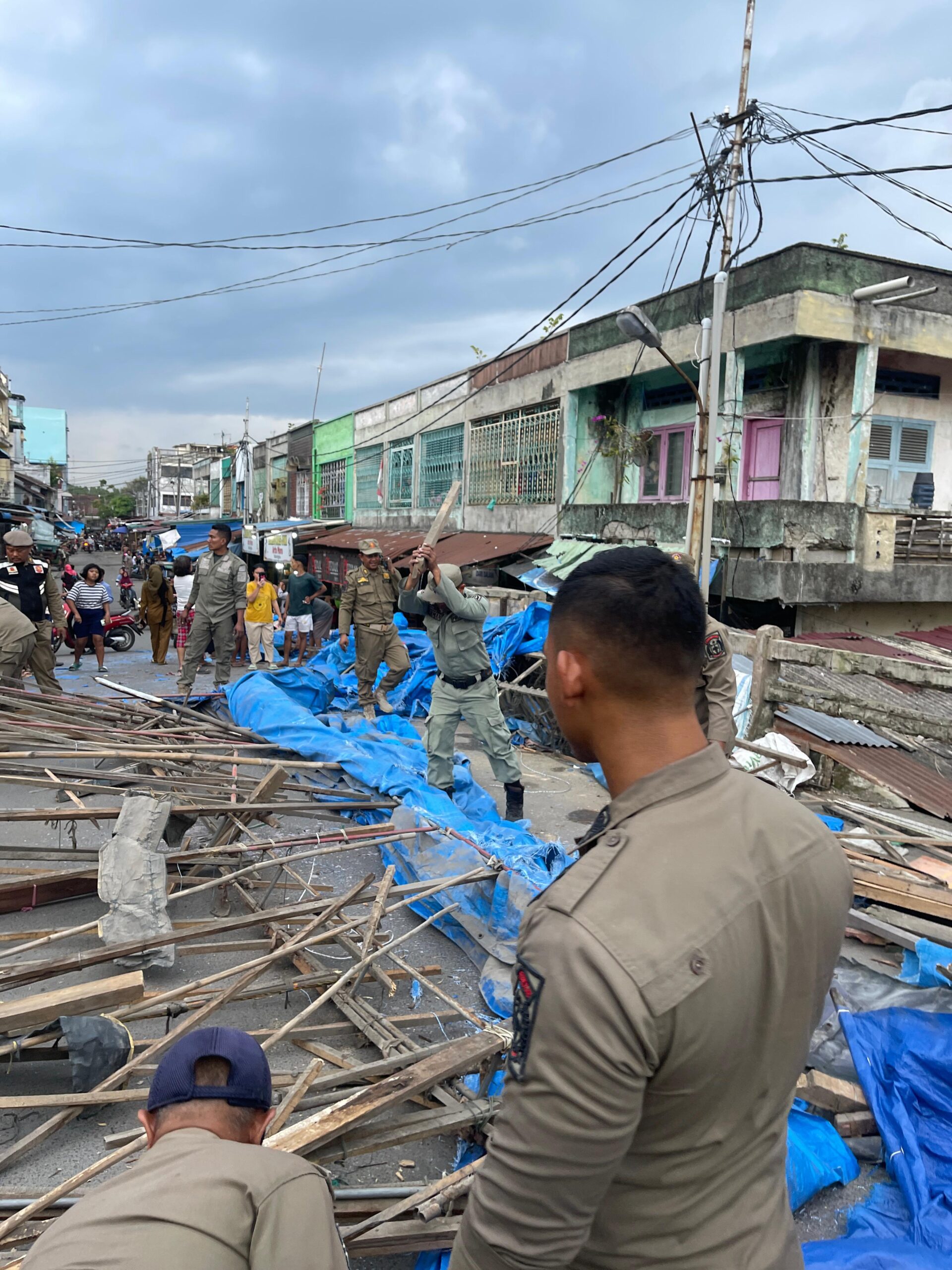 Tindakan represif dilakukan personel Satpol PP Kabupaten Langkat terhadap salah satu PKL di Jalan Thamrin dan Jalan Sudirman Kecamatan Babalan.
