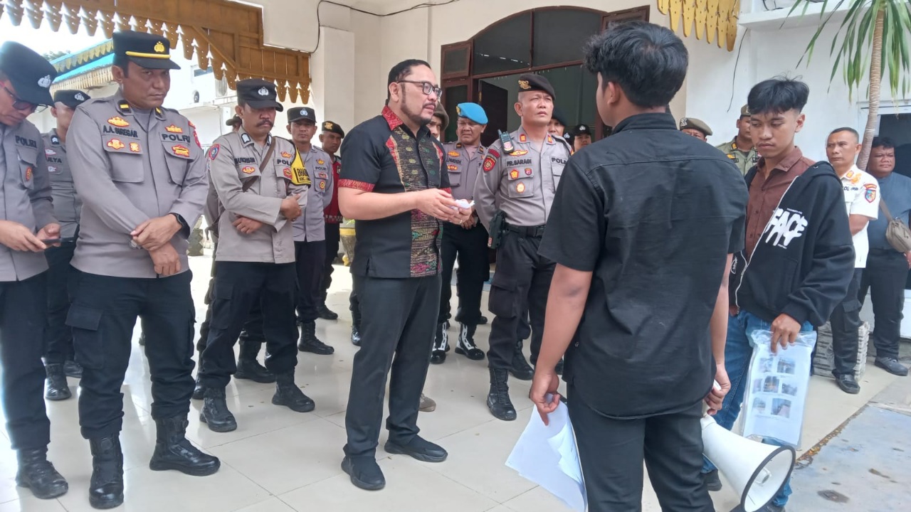 Kehadiran pengunjukrasa membawa berbagai sepanduk bertulisan bernada mengecam dan mendapat pengawalan dari Polres Batubara dan Sat Pol PP.
