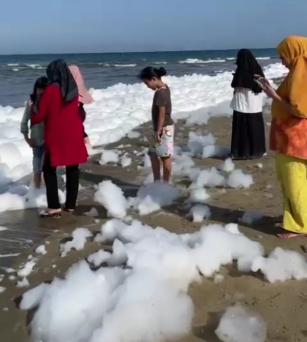 Munculnya gumpalan busa putih di sepanjang Pantai Tohia tersebut cukup menghebohkan dan menarik perhatian warga.