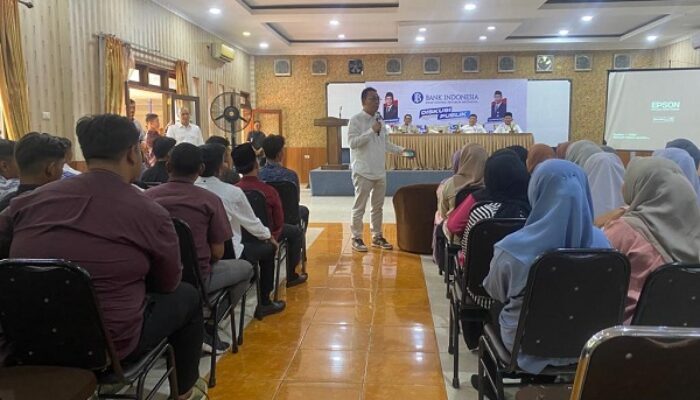 Kepala Perwakilan BI Sibolga Yuliansyah Andrias ketika menerangkan, bagaimana mengimplementasikan Qris “Menuju Masyarakat Non Tunai” kepada undangan yang hadir menyebutkan, dengan Qris ini dapat membantu memudahkan untuk transaksi keuangan.