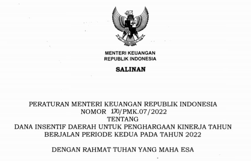 Untuk mengetahui Pemda mana saja di seluruh Indonesia yang menerima penghargaan itu, dapat dilihat di lampiran Peraturan Menteri Keuangan RI No.170/PMK.07/2022 tentang Dana Insentif Daerah Untuk Penghargaan Kinerja Tahun Berjalan Periode Kedua Pada Tahun 2022