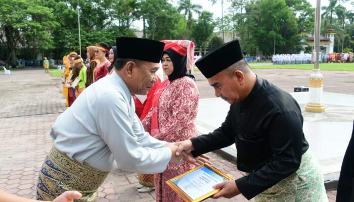 LUBUKPAKAM (Waspada): Peringatan Hari Pendidikan Nasional tahun 2023 di Kabupaten Deliserdang berlangsung khidmat di Alun-Alun Pemkab Deliserdang, Selasa (2/5) pagi.