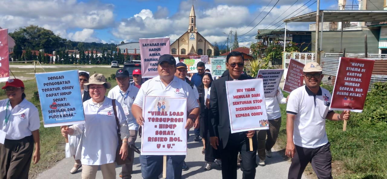 DOLOKSANGGUL (Waspada.id): Momentum Peringatan Hari AIDS Sedunia (HAS), 01 Desember 2025, Departemen Diakonia HKBP melalui Lembaga HKBP AIDS Ministry (HAM) tolak stigma (diskriminasi) terhadap Orang Dengan HIV/AIDS (ODHA). Tolak stigma ODHA itu ditandai dengan kampanye, sosialisasi dan edukasi dengan melibatkan mitra kerja, Pemkab Humbahas melalui instansi terkait, serta seribuan kaula muda, dari tingkat SMA/SMK dan Mahasiswa, Senin (01/12/2025).