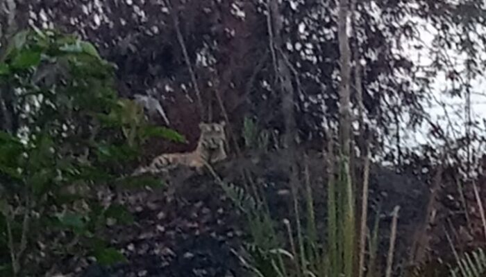 Dalam foto dan video yang dibagikan salah seorang warga kepada Waspada, Sabtu (27/4) malam, tampak seekor harimau merebahkan diri di atas perbukitan yang dipenuhi belukar di Jalan Tekong.