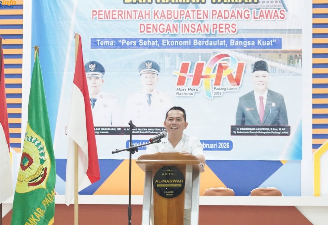 Dalam sambutannya, Bupati mengapresiasi dedikasi para jurnalis yang terus berkontribusi bagi kemajuan Kabupaten Padanglawas. Ia menyebut tema HPN tahun 2026, “Pers Sehat, Ekonomi Berdaulat, Bangsa Kuat”, merupakan fondasi penting bagi kemajuan negara.