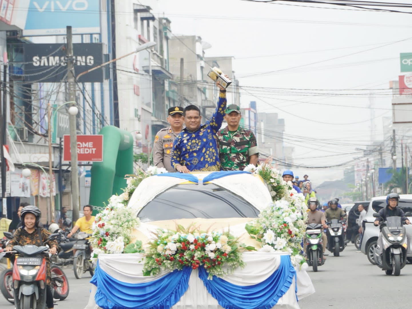 Sebelumnya, Piala Adipura yang diraih Kota Lubukpakam tersebut diarak dari Kantor Bupati Deliserdang menggunakan mobil hias dengan mengelilingi Kota Lubukpakam.