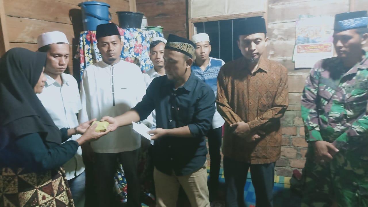 Keterangan foto: Pihak perusahaan kontraktor pembangunan kantor PN Sibuhuan bersama ketua PN Sibuhuan hadiri tahlilan dan pengajian yasinan sekaligus menyerahkan bantuan di hari pertama meninggalnya SN, 26, karena kecelakaan kerja.