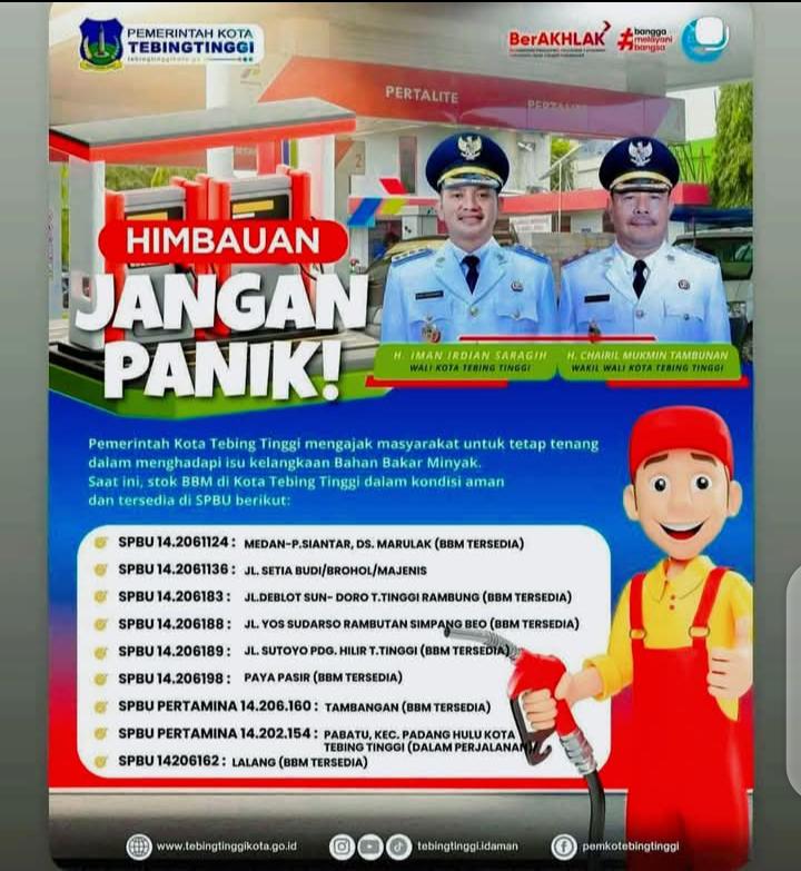 Pemko Tebingtinggi dalam imbauan yang disebar di berbagai platform medsos justru menyebut fakta kelangkaan BBM ini sebagai isu.