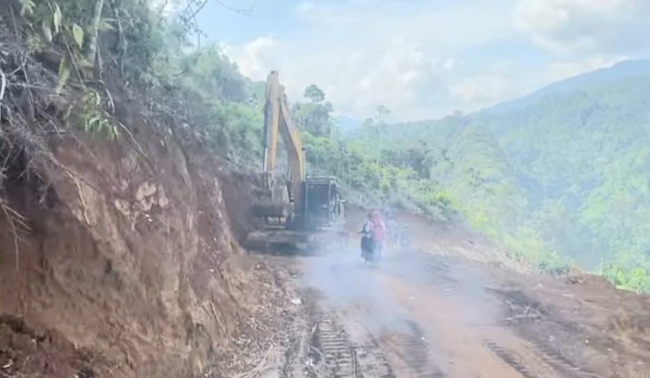 “Enggak mungkin kami buka tegak lurus, maka dari itu kami ikuti lereng-lereng perbukitan yang medannya mampu dilalui kendaraan,” tambahnya terkait panjang jalan yang mencapai 2,3 kilometer.