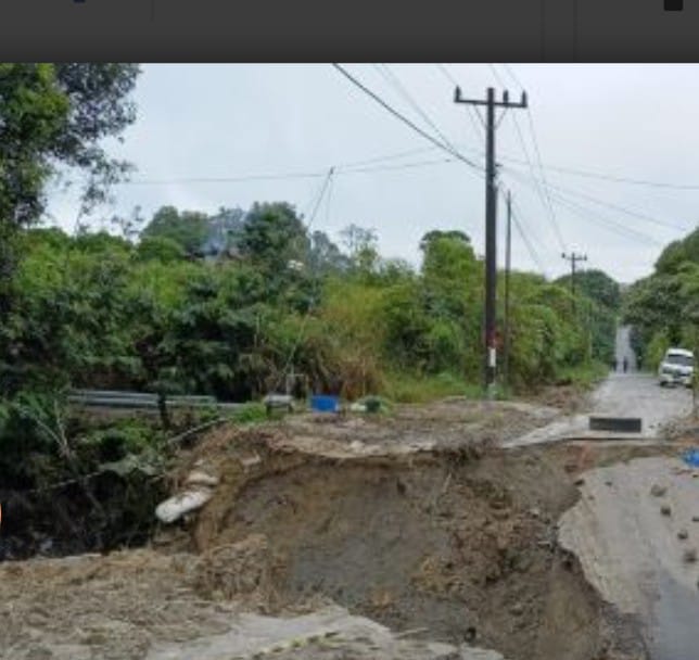 Kerusakan jalan itu diakibatkan tingginya intensitas curah hujan dalam beberapa hari terakhir.