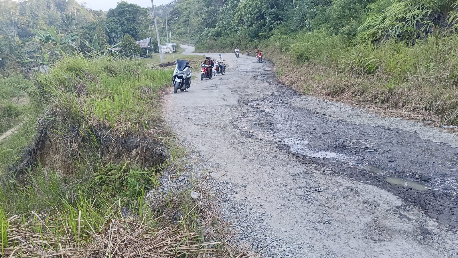 Kemudian Jalan yang akan dilalui adalah jalan rusak dengan permukaan yang kupak kapik, berlobang dan bergelombang. Kondisi jalan tersebut sangat mengganggu kenyamanan pengendara maupun pengguna jalan.