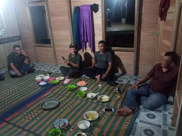 berdialog dengan Muslim Batubara, orang pertama bermukim di Dusun Km 16. Waspada.id/Irham Hagabean Nasution