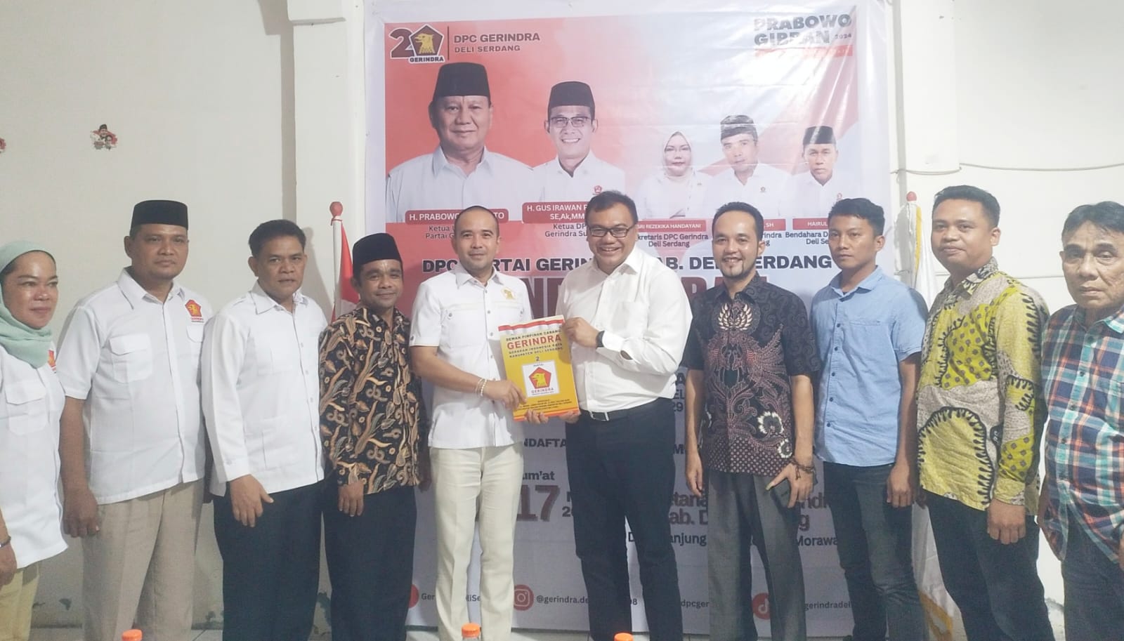 Ketiga mengembalikan formulir pendaftaran Bacalon Bupati dan Wakil Bupati secara langsung diterima Ketua Dewan Pimpinan Cabang (DPC) Partai Gerindra Deliserdang yang juga Ketua DPRD Deliserdang (DS) Zakky Shahri SH.