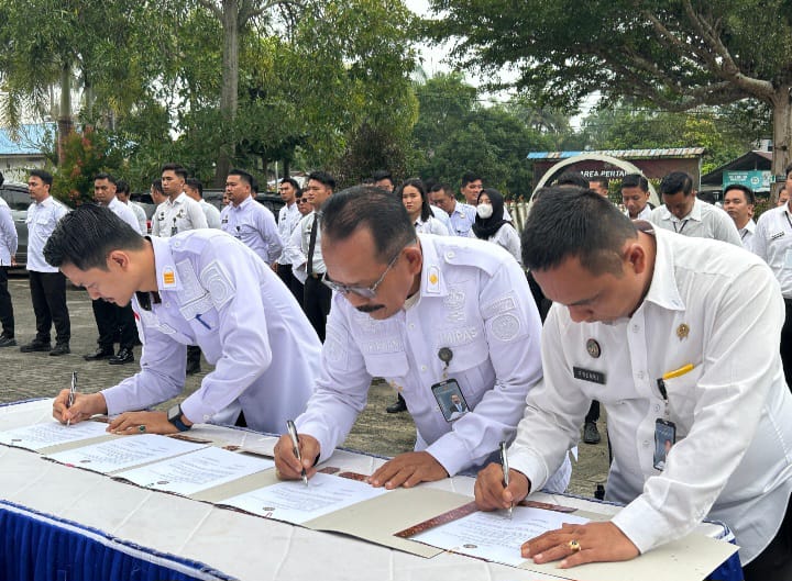 Perjanjian ini juga berfungsi sebagai instrumen pengendalian dan evaluasi kinerja, sehingga setiap pelaksanaan tugas dapat terukur, akuntabel, dan sesuai dengan target yang telah ditetapkan. Penandatanganan berlangsung tertib dan khidmat.
