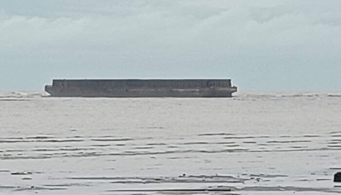 Informasi dihimpun, Selasa (25/11/25), kapal tongkang bernama Sinar Lestari 358, sudah sepekan terlihat berhenti di perairan laut Pantai Labu. Kapal tersebut tidak berawak, sehingga diduga kapal itu terlepas dari kapal penariknya, saat badai angin kencang melanda Laut Selat Malaka.